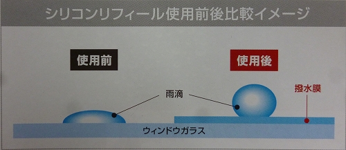 ●またシリコンゴムの成分はガラスの主成分と同じケイ素で構成されているため、化学結合の相性に優れ、長期間にわたり安定した撥水効果を発揮します。(持続効果は約6ヶ月間)